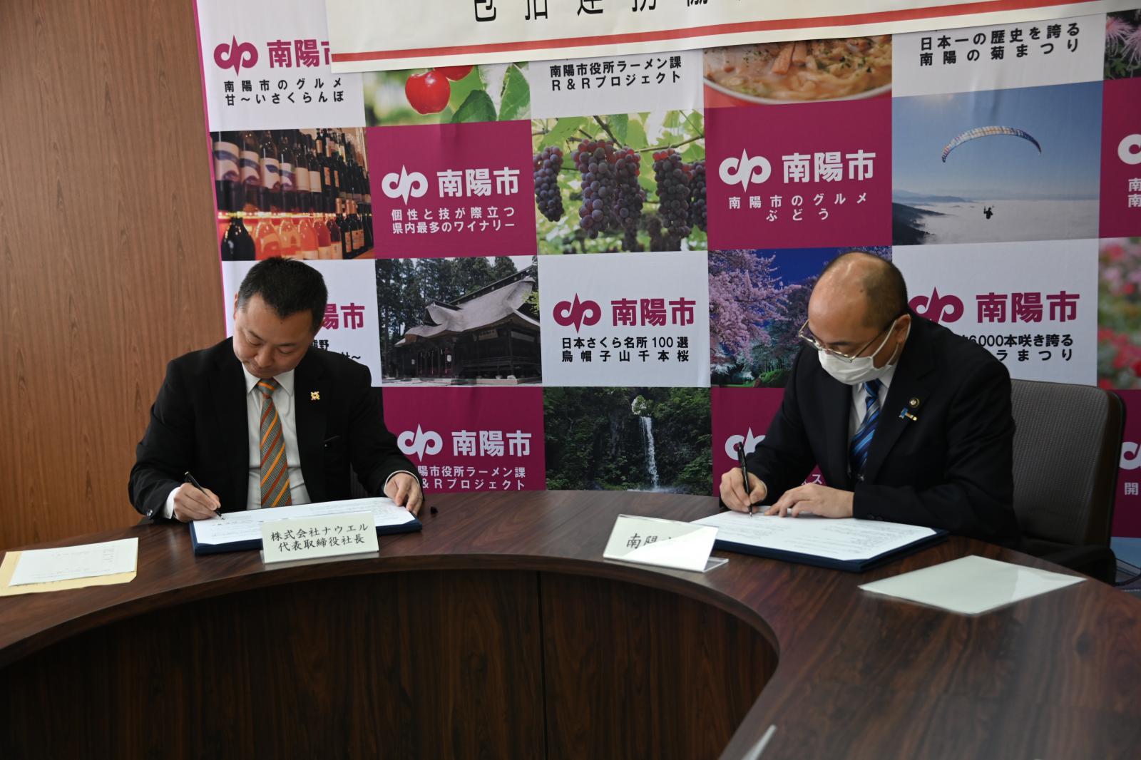 本市の地方創生による地域活性化に向けて、互いの連携・協力体制を更に強め、株式会社ナウエルのノウハウを市民福祉の向上に活かすため協定の締結を致しました。